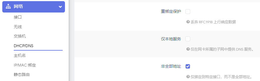 因为在安卓客户端使用 dns 并没有工作,经过搜寻发现 Dnsmasq 默认勾选了仅本地服务,去掉就行了。